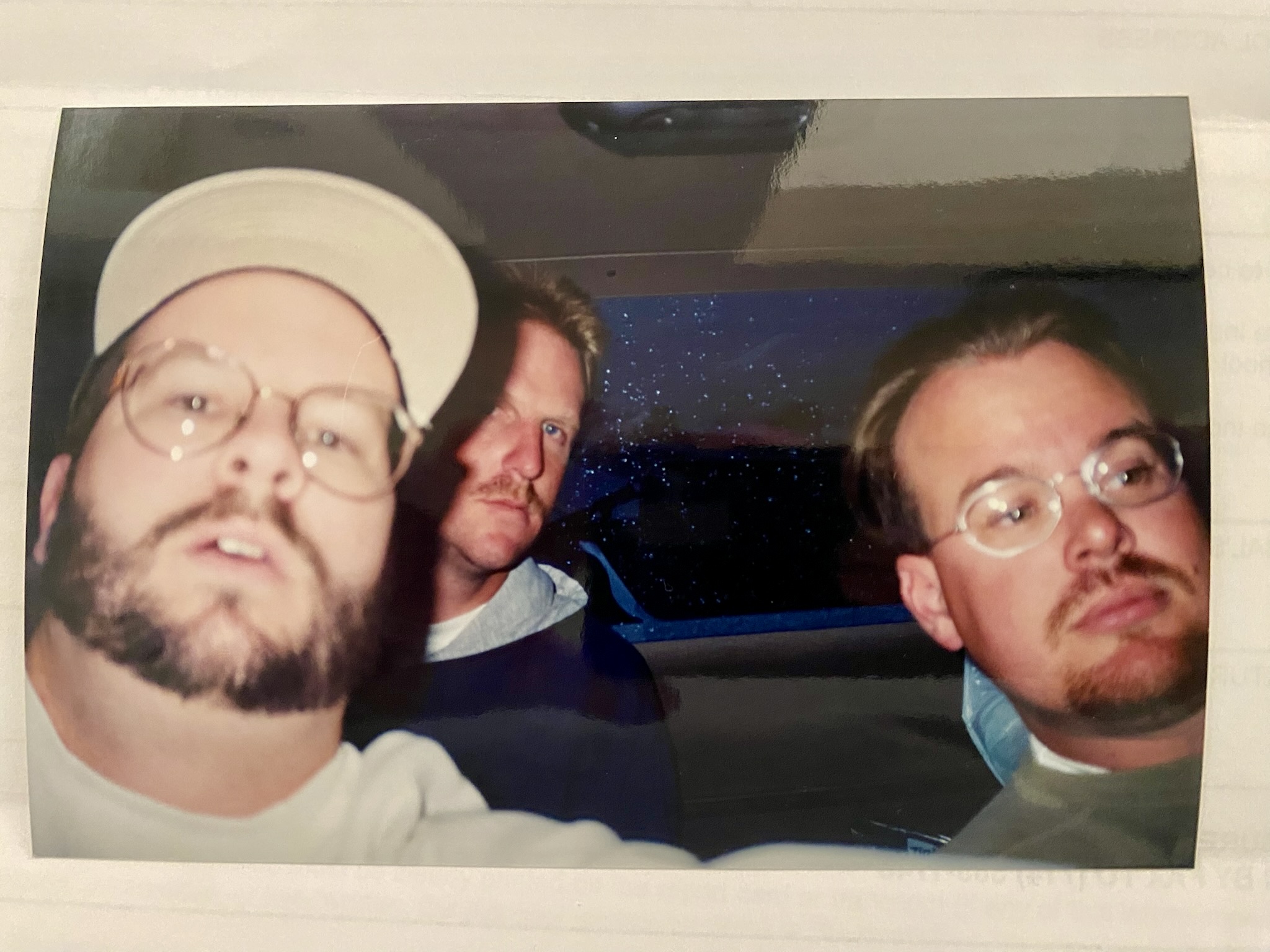 Photo – a selfie back when selfies were taken with film cameras, at least 30 years ago. Three knuckleheads driving to the desert way too early. That’s my brother and I on the left and my brother’s other brother, Paul, on the right. We’ll miss you, Paul.