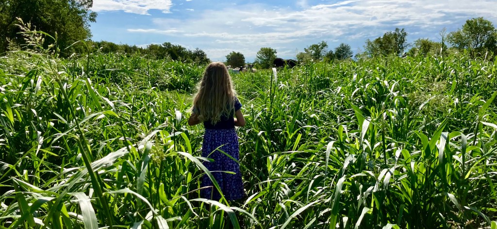 This image of my granddaughter running through the tall grass lingers in my mind, a snapshot of pure joy and freedom. The grass climbs high as her shoulders, swaying in the gentle breeze as she runs, her laughter echoing across the open field.